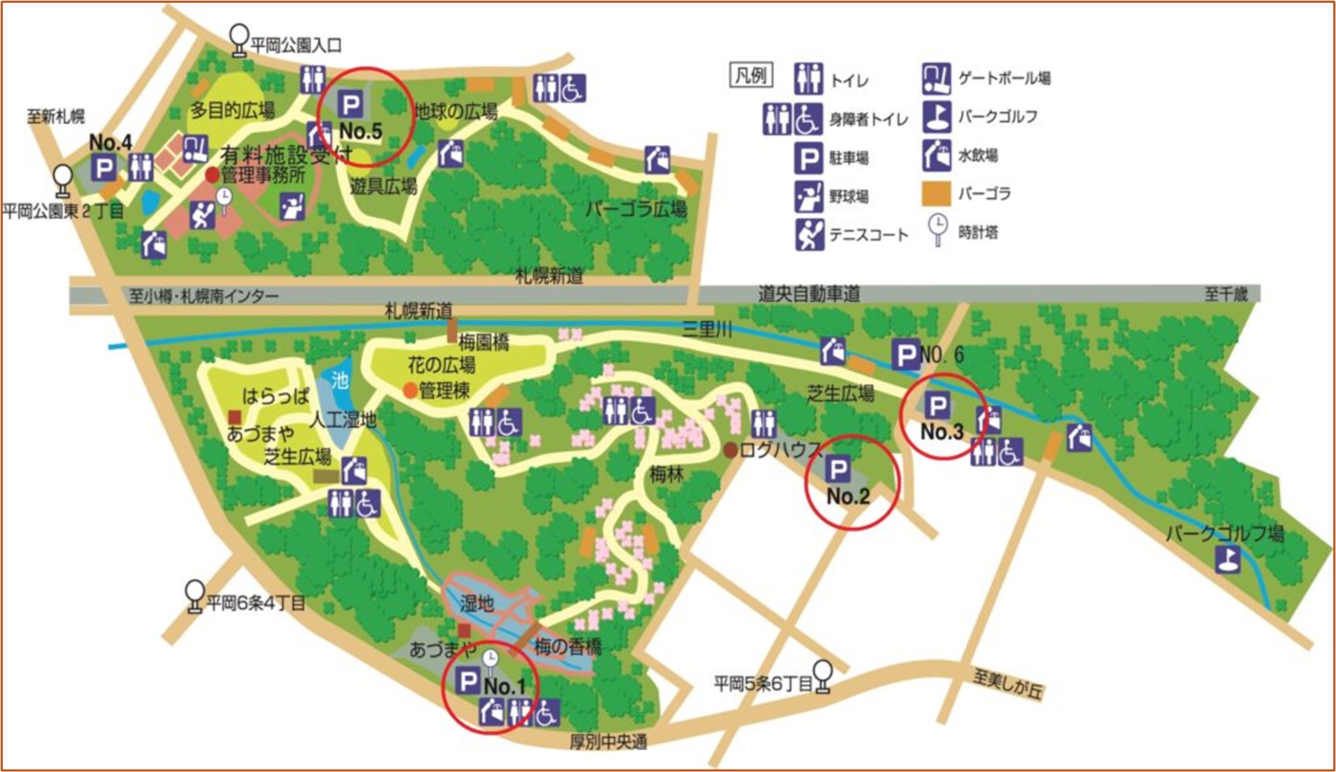 「平岡公園」は、札幌市の中心部より南東に11kmに位置し清田区平岡と里塚にまたがる公園です。「道央自動車道」(札幌南インターと北広島インターとの間)と「札幌新道」を挟むように東西に分かれて所在しています。