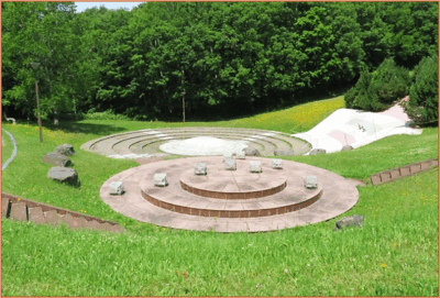 「地球の広場」には、太陽系の惑星配列を、地球を中心として表現した造作物が配置されてあります。