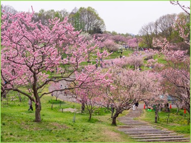 「梅林」には、豊後性の紅梅種と白 梅種の梅が4:6の割合で、1,200本植林されています。