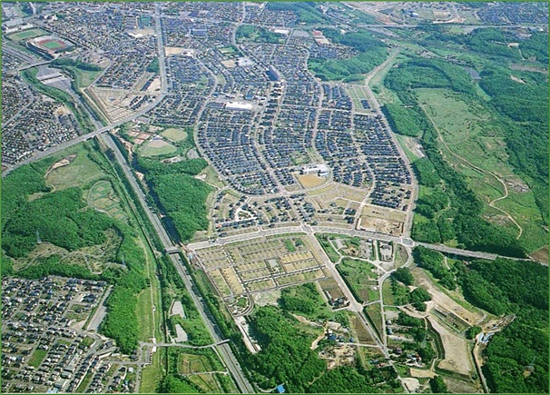 平岡東地区の発展の様子と「道央自動車道」の道筋、隣接する野幌川と周辺の緑地帯・里塚地区・里塚緑ヶ丘地区・平岡地区が一目瞭然の1葉となっています。