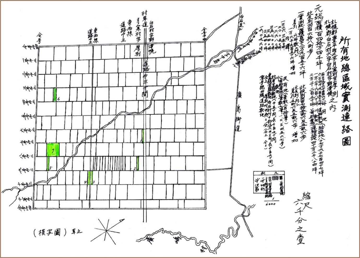 「所有地総区域實測連絡圖」(筆者の模写図) (原図 北海道大学北方資料館所蔵)