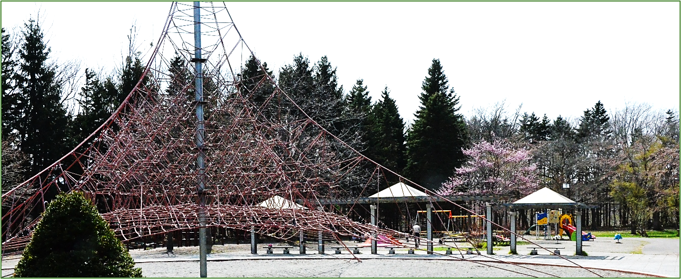 公園の中央を走る道央自動車道の標高は、約30m~35mですから、かなりの高低差のある公園となっています。元々は、三里川の川筋があり、長い年月をかけて浸食した深い谷間の公園です。三里川は、「ラウネナイ川」と呼ばれた時期もあります。「ラウネナイ」の意味は、深い峡谷(V字谷)の川という「アイヌ語」です。