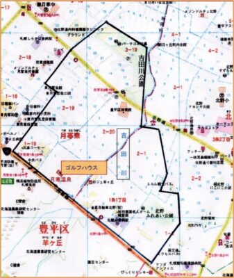 設置場所は、上記図面より、現在の「月寒温泉」の北側にゴルフハウスを記してみました。