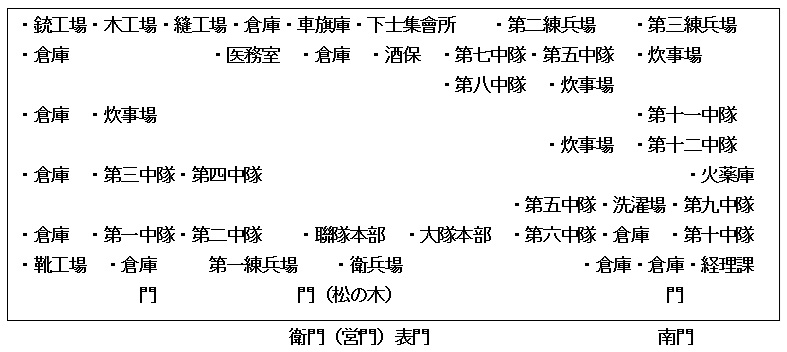 (1)明治40年代初期 「歩兵第二十五聯隊」兵営図に記されている主な施