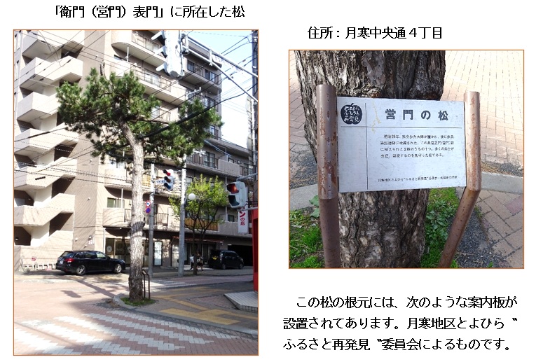 明治29年、独立歩兵大隊が置かれ、後に歩兵25連隊に改編された。この兵営正門(営門)前に植えられた2株のうちの1つ。多くの兵士が出征、凱旋するのを見守った松である。