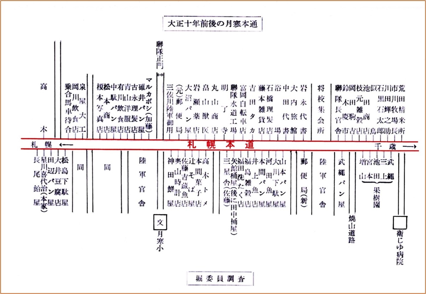 月寒地域の「札幌本道(室蘭街道)」<国道36号線>の両側は、「歩兵第二十五聯隊」関連の商店が軒を並べ活況を呈していました。