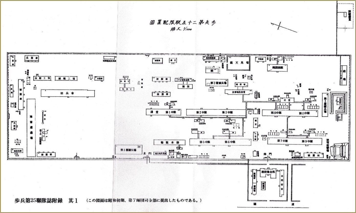 上記の「歩兵第二十五聯隊兵營圖」に記されている内容