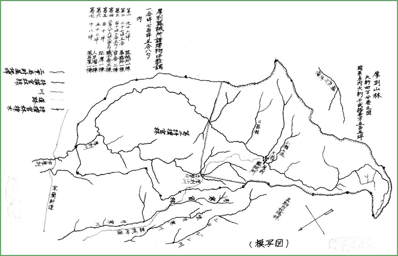 ところで、取得した「植林地」は、明治初期には「厚別(アシシベツ)官林」(一等官林)の一部で、その官林内に所在していました。