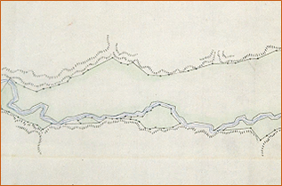 公有地の測量は、かなり大変であったことが想像されます。正確な公有地の面積を割り出すために、川の面積を除き計算していたと思われます。川の両岸の測量をした経緯が図面に残っています。