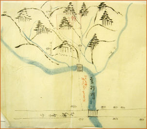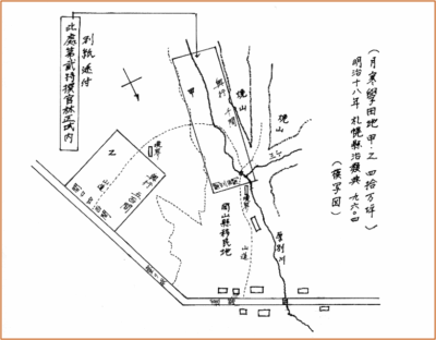 左図は、「山林願」に添付されていた「願い出図面」(山夏第九號)です。