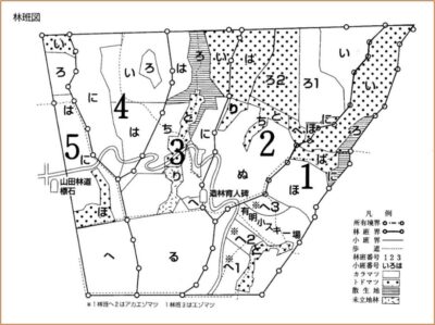 下図は、平成元年の「林班図」となっています。