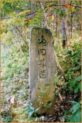 左の写真は、「山田林道」の標石です。