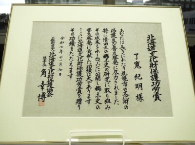 こうした活動が関係者の目にとまり、今回の表彰につながりました。なお、今回の表彰は、札幌市文化財課と札幌市教委が了寛さんの研究と普及活動を高く評価し、北海道文化財保護協会に推薦したことで実現しました。